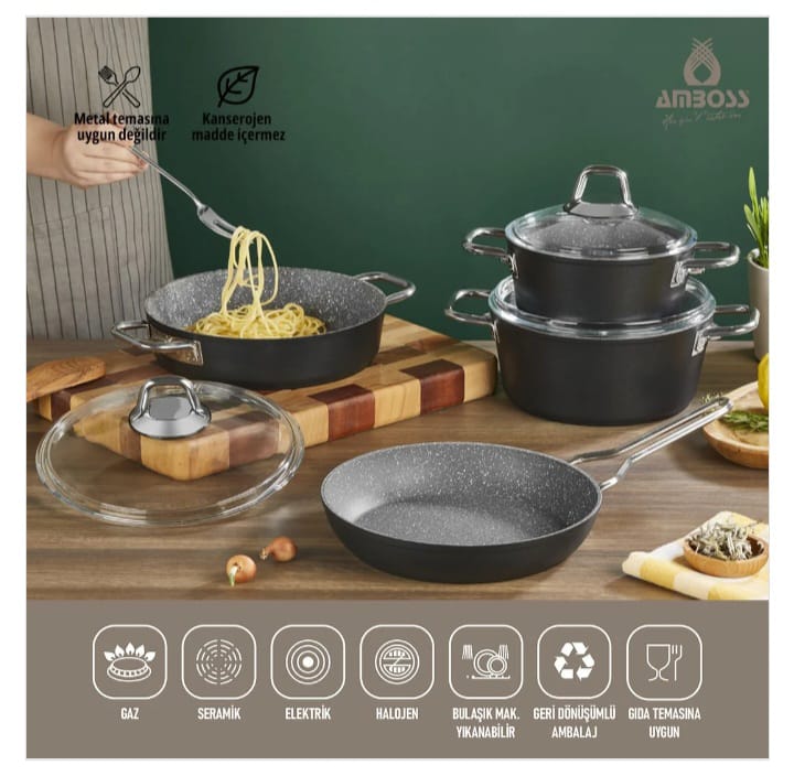 بفضل تصميمه العصري، ومتانته، وتعدد استخداماته، سيصبح طقم أواني الطهي أمبوس