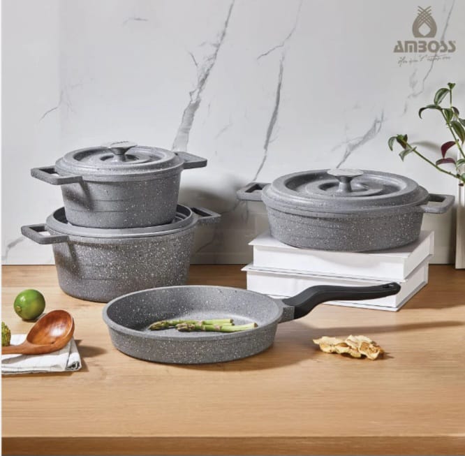 طقم أواني طهي أمبوس كوارتز، 7 قطع، هو الخيار الأمثل لك! هذا الطقم المكون من 7 قطع يُمكّنك من طهي جميع أنواع الأطباق بسهولة وإتقان.