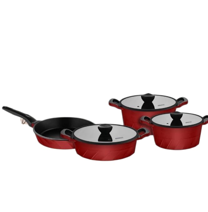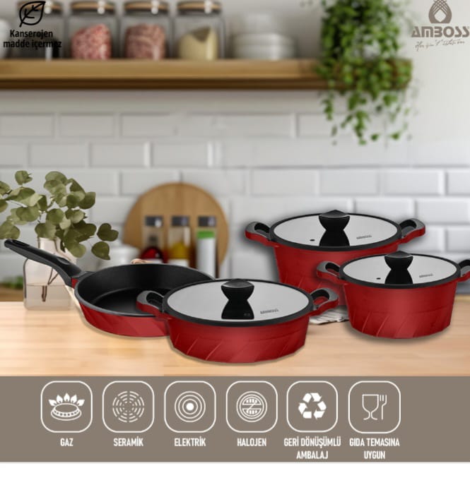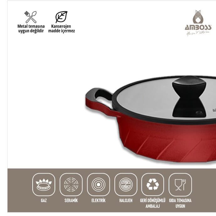 طقم قدور ومقالي أمبوس فينتو من حديد الزهر التيتانيوم، 7 قطع - أحمر: نظرة عامة شاملة طقم أمبوس فينتو من حديد الزهر لا غنى عنه في مطبخك، يجمع بين الأناقة والأداء. بفضل طلاء التيتانيوم، يتميز بمقاومته للخدش ومتانته وسهولة تنظيفه. يوزع هيكله المصنوع من حديد الزهر فينتو الحرارة بالتساوي، مما يجعل أطباقك أكثر لذة. الميزات الرئيسية للمنتج: فينتو: يوزع الحرارة بالتساوي، مما يضمن لك وجبات شهية أكثر غطاء زجاجي: يُتيح لك التحكم في عملية الطهي ويحافظ على الحرارة. تصميم مقبض مميز: بفضل هيكله المريح، يوفر قبضة مريحة ومقاومة للحرارة. مناسب لجميع أنواع المواقد باستثناء مواقد الحث: يمكن استخدامه على مواقد الغاز الطبيعي والكهرباء والسيراميك. محتويات الطقم (عادةً): قدر عميق 20×9.5 سم، 2.25 لتر قدر عميق 24×11 سم، 3.75 لتر قدر منخفض 26×5 سم، 2.75 لتر مقلاة 26×7 سم، 2 لتر لماذا تختار طقم قوالب أمبوس فينتو؟ المتانة: فينتو متينة بفضل هيكلها المصبوب. طهي متساوٍ: يُتيح لك طهي وجباتك بلذة أكبر من خلال توزيع الحرارة بالتساوي. سهل التنظيف: سهل التنظيف بفضل طلاء التيتانيوم. تصميم أنيق: يُضفي لمسة عصرية على مطبخك. استخدامات متعددة: يُمكنك تحضير العديد من الأطباق بفضل الأواني والمقالي بأحجامها المختلفة. الاستخدامات وجبات يومية: يُمكنك تحضير جميع وجباتك بسهولة، مثل الحساء واليخنات والقلي السريع. الأطباق المميزة: مثالية للأطباق المميزة مثل أرز البيلاف،وأطباق اللحوم. الخبز: يمكن استخدامه أيضًا للخبز. تتيح لك المنتجات المصبوبة طهي أطباق شهية على درجات حرارة منخفضة وفي وقت قصير بفضل توزيع الحرارة المتساوي والسريع على سطحها. بفضل طلاء التيتانيوم الخاص بها، فإن منتجاتنا لا تخدش أو تصدأ عند استخدامها بشكل صحيح. إنها مناسبة لطهي اليخنات واللحوم والدجاج. وهي آمنة للاستخدام في الفرن، حيث تسخن بسرعة وتوزع الحرارة بالتساوي، مما يسمح لك بالطهي دون فقدان النكهة.