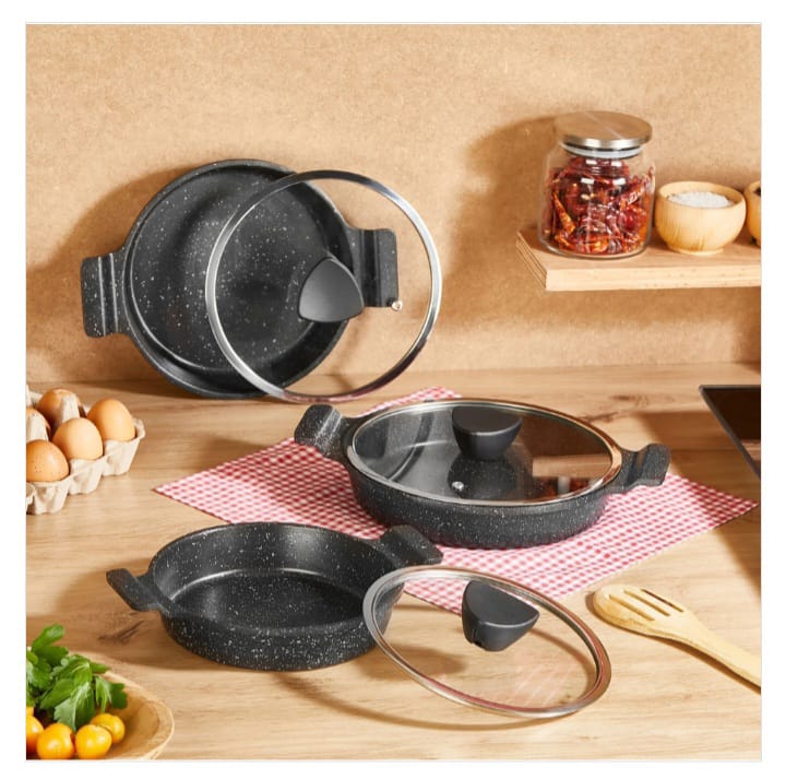طقم مقلاة أمبوس أسترال جرانيت من 6 قطع من الحديد الزهر مع غطاء زجاجي: الشيف الجديد في عالم المطابخ ستصبح مجموعة مقالي أمبوس أسترال، المكونة من 6 قطع، قطعة أساسية في مطبخك بفضل ميزاتها الفاخرة وتصميمها الأنيق. فهي توفر تجربة طهي صحية ومريحة، لا سيما بفضل طلاء الجرانيت والأغطية الزجاجية. مميزات المنتج: 6 قطع غنية بالمحتوى: بفضل أحجام المقالي المختلفة (18 سم، 20 سم، و22 سم)، يمكنكِ تحضير جميع أنواع الوجبات بسهولة. طبقة من الجرانيت: السطح الداخلي مطلي بالجرانيت، مما يجعل المقلاة مقاومة للخدش، وغير لاصقة، وسهلة التنظيف. مادة مقاومة للهب بثلاث طبقات: مطلية بثلاث طبقات من مادة مقاومة للهب وغير لاصقة، مثالية للطهي الصحي. غطاء زجاجي: يتيح لكِ التحكم في عملية الطهي ويسمح بطهي أسرع من خلال حبس الحرارة في الداخل. مقاوم للخدش واللهب: يضمن استخدامًا طويل الأمد. ضمان لمدة عامين: ضمان الشركة المصنعة لمدة عامين دليل على ثقتها بجودة المنتج. آمنة للغسل في غسالة الأطباق: تُسهّل التنظيف. آمنة للطعام: آمنة على صحتكِ. لماذا تختار طقم أمبوس أسترال المكون من 6 قطع؟ طهي صحي: بفضل خاصية عدم الالتصاق، يمكنكِ تحضير وجبات صحية باستخدام زيت أقل. المتانة: يتميز بهيكل متين يدوم لسنوات طويلة. استخدامات متعددة: يمكنكِ تحضير جميع أنواع الوجبات بفضل أحجام المقالي المختلفة. استخدام عملي: بفضل الأغطية الزجاجية، يمكنكِ مراقبة عملية الطهي وتنظيفها بسهولة في غسالة الأطباق. تصميم أنيق: يمنح مطبخكِ مظهرًا عصريًا وأنيقًا. محتويات الطقم مقلاة 18 سم بغطاء زجاجي مقلاة 20 سم بغطاء زجاجي مقلاة 22 سم بغطاء زجاجي الخلاصة ستُشكّل مجموعة مقالي أمبوس أسترال، المكونة من 6 قطع، إضافةً أساسيةً لمطبخك بفضل أناقتها ووظائفها العملية. إذا كنت تبحث عن أواني طهي صحية ومتينة ومتعددة الاستخدامات، فإن أمبوس أسترال هي الخيار الأمثل لك! معلومات إضافية: تعليمات العناية: لحماية طبقة الجرانيت، تجنّب استخدام الأدوات المعدنية. التنظيف: آمنة للاستخدام في غسالة الأطباق، ولكن غسلها يدويًا يُطيل عمرها الافتراضي.