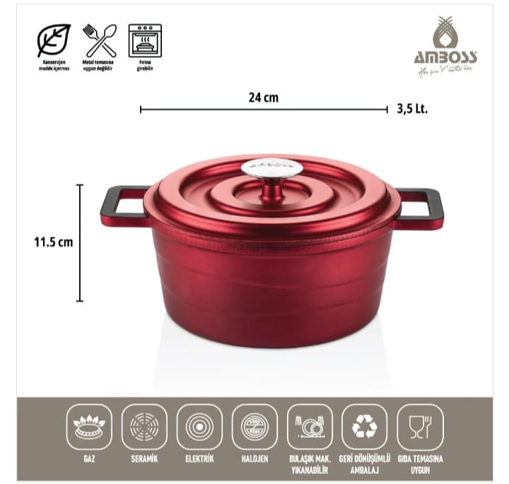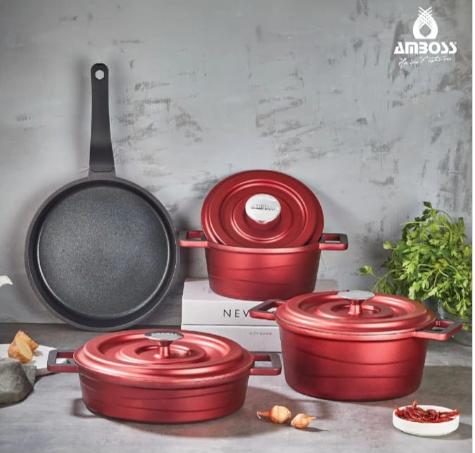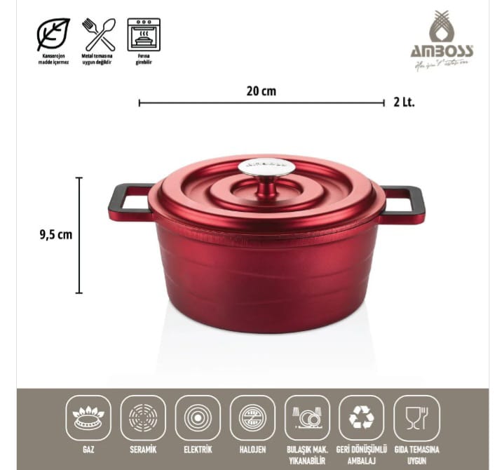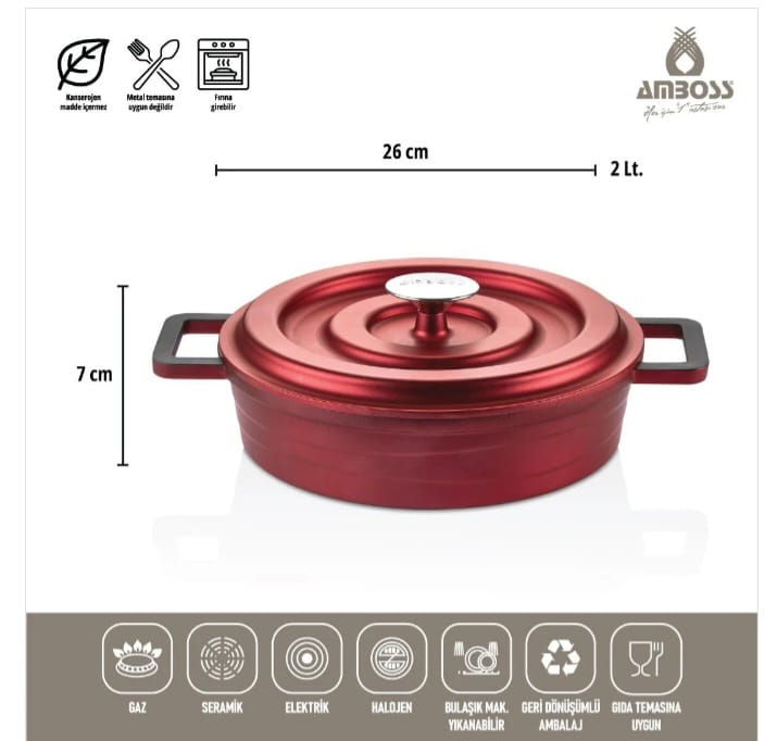 مميزات طقم أواني الطهي النحاسي Amboss الأسود المصنوع من الحديد الزهر، والمكون من 7 قطع: طلاء التيتانيوم: بفضل طلاء التيتانيوم، تتميز الأواني بمقاومة فائقة للخدوش والاحتكاك. مقاومة للخدش: بفضل طلاء التيتانيوم، تتميز الأواني بمقاومة فائقة للخدوش والاحتكاك.