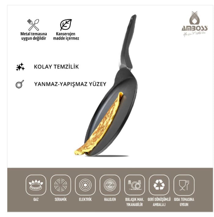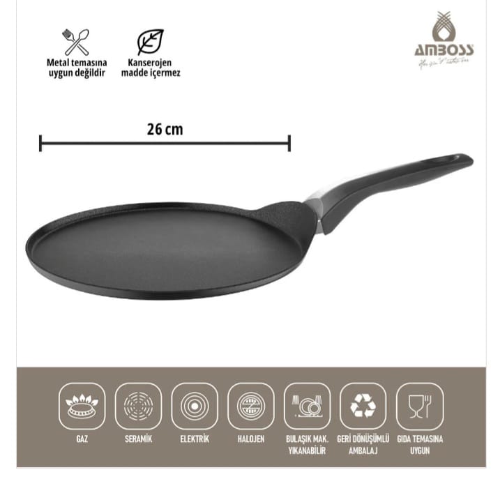 مقلاة كريب أمبوس موكا 26 سم غير لاصقة مع طلاء تيتانيوم – أسود