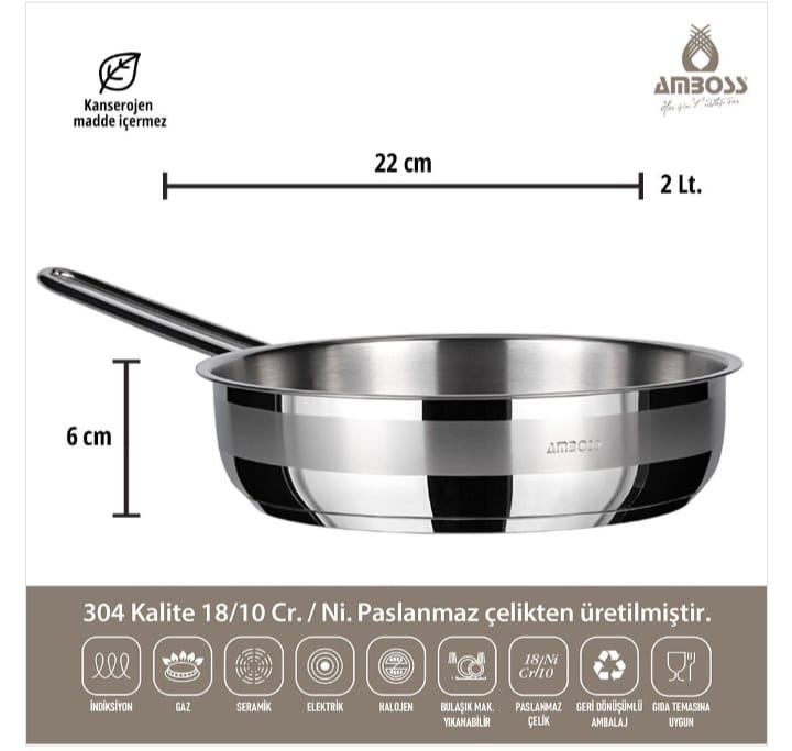 ستصبح مقلاة أمبوس سافير بدون غطاء، مقاس 22 سم، قطعة أساسية في مطبخك بفضل تصميمها الأنيق وأدائها العالي. مصنوعة من - الاينوكس - الفولادالمقاوم للصدأ 18/10،ما يتيح لك طهي أطباقك بإتقان بفضل هيكلها المتين وتوزيعها المتساوي للحرارة. مميزات مقلاة أمبوس سافير بدون غطاء، 22 سم تصميم أنيق وعصري: تتميز بتصميمها العصري الذي يضفي لمسة جمالية على مطبخك. الفولاد المقاوم للصدأ 18/10 : مقاوم للصدأ والتآكل. صحي ومتين. توزيع متساوٍ للحرارة: يُطهى طعامك بالتساوي في كل زاوية. مناسبة لجميع أنواع المواقد: يمكن استخدامها على جميع أنواع المواقد، بما في ذلك مواقد الحث. سهولة التنظيف: بفضل خاصية الأمان في غسالة الأطباق، فإن التنظيف سهل للغاية. لماذا تختار مقلاة أمبوس سافير ٢٢ سم بدون غطاء؟ استخدامات متعددة: مثالية لتحضير العديد من الأطباق مثل العجة، الكريب، والأطباق المقلية. متينة: منتج متين يمكنك استخدامه لسنوات. تصميم أنيق: يُضفي لمسة عصرية على مطبخك. سهلة الاستخدام: مريحة في الاستخدام بفضل مقابضها المريحة. طهي سريع: بفضل توزيع الحرارة المتساوي، ستنضج وجباتك بشكل أسرع. مجالات الاستخدام الأومليت والكريب: مثاليان لوجبات إفطار سريعة ولذيذة. تشويح اللحوم: يمكنك تشويح اللحوم بسهولة وسرعة. تحمير الخضراوات: يمكنك تحمير الخضراوات بسرعة. طهي السمك: يمكنك طهي السمك دون أن يلتصق أو يجف. العناية والتنظيف لضمان الاستخدام طويل الأمد لمقلاة أمبوس سافير بدون غطاء، مقاس 22 سم، يُرجى مراعاة توصيات العناية التالية: التنظيف: آمنة للغسل في غسالة الأطباق، ولكن غسلها يدويًا يُطيل عمرها الافتراضي. المواد الحمضية: تجنب استخدام المواد الحمضية مثل الليمون والخل. الإسفنجات الكاشطة: لا تستخدم الإسفنجات المعدنية أو الصلبة لتجنب خدش سطح المقلاة. فرق الحرارة: لا تغمر مقلاة ساخنة في الماء البارد.